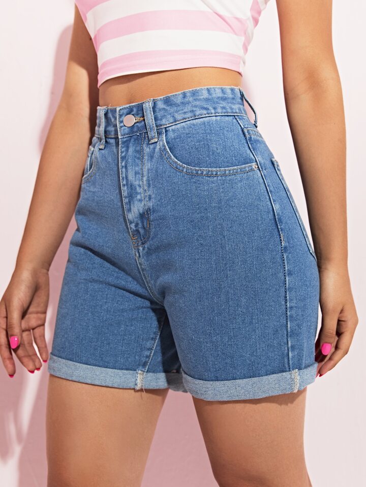 Denim Shorts mit hoher Taille und gerolltem Saum