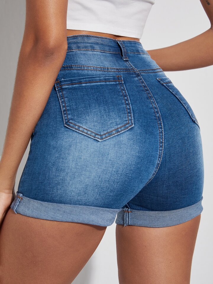 Denim Shorts mit hoher Taille und gerolltem Saum