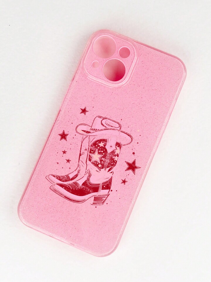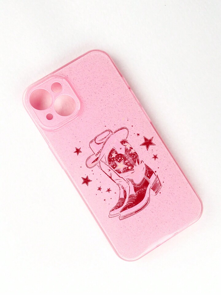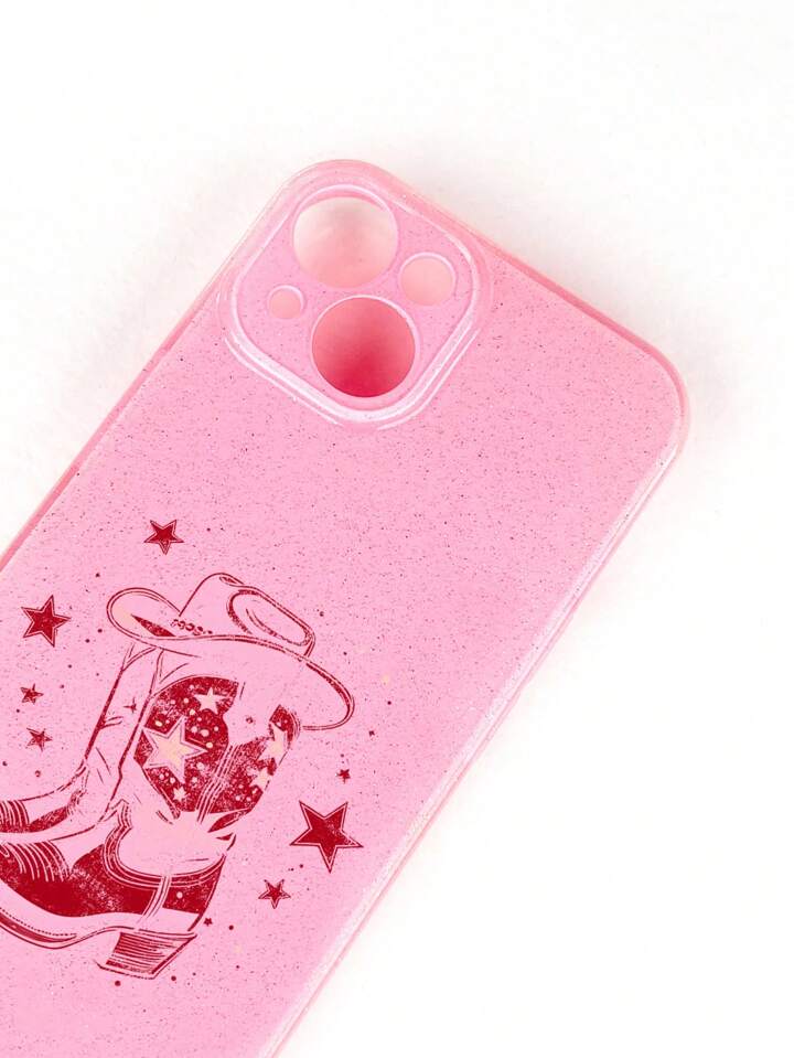 Hippie 1 Stück westlicher Stil Cowboy Stiefel und Hut Sterne Glitzer Glänzend Rosa Handyhülle kompatibel mit iPhone 11 12 13 14 15 Pro Max