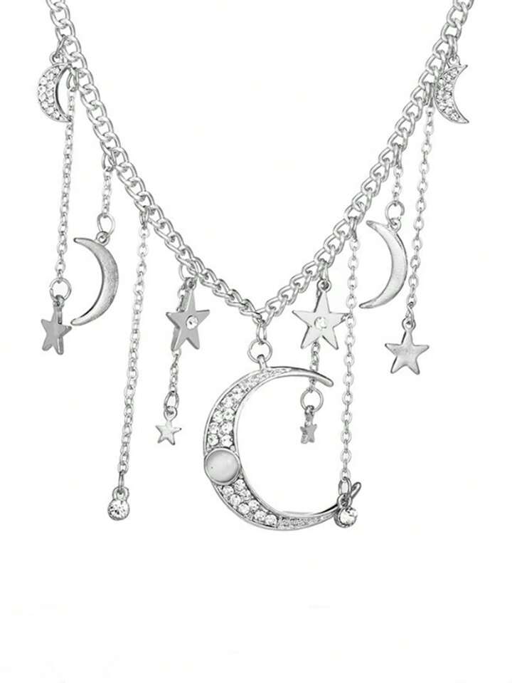 Hippie Bohemian Kristall Stern- und Mondanhänger Halskette, Schmuck für Frauenparty