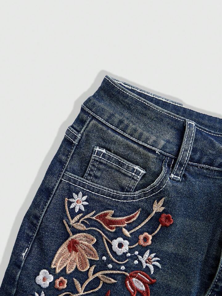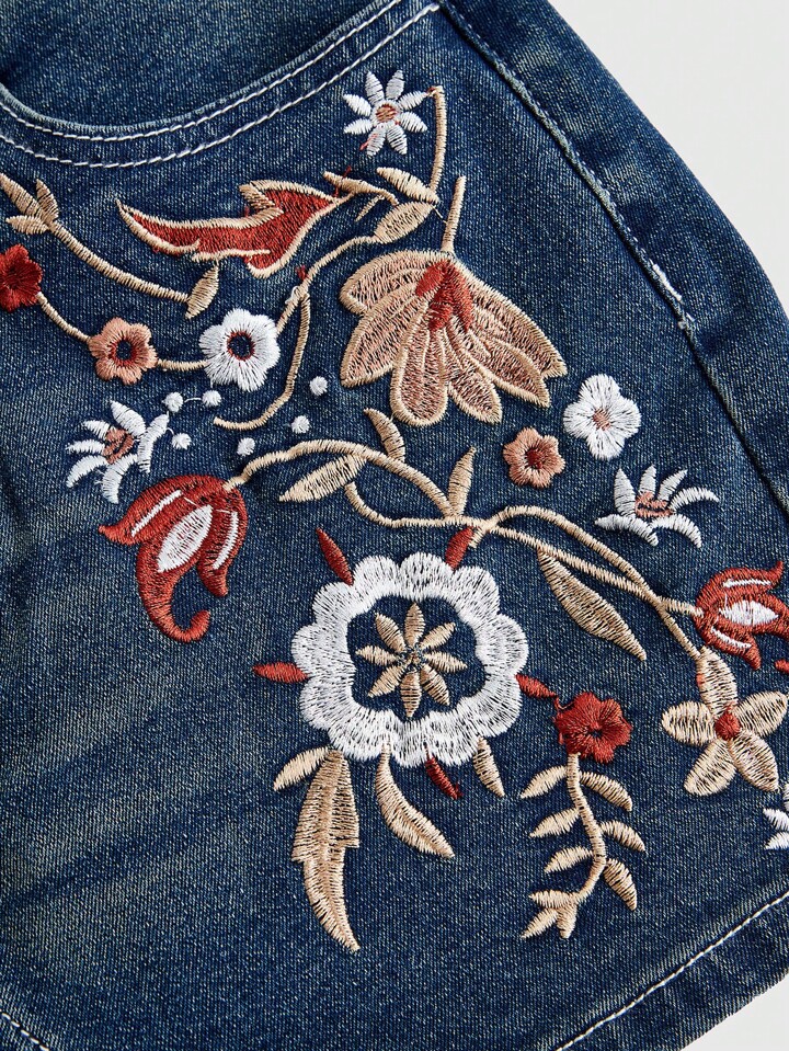 Hippie Lässiger A-Linien Denim Rock mit Blumen Stickerei, Frühling/Herbst