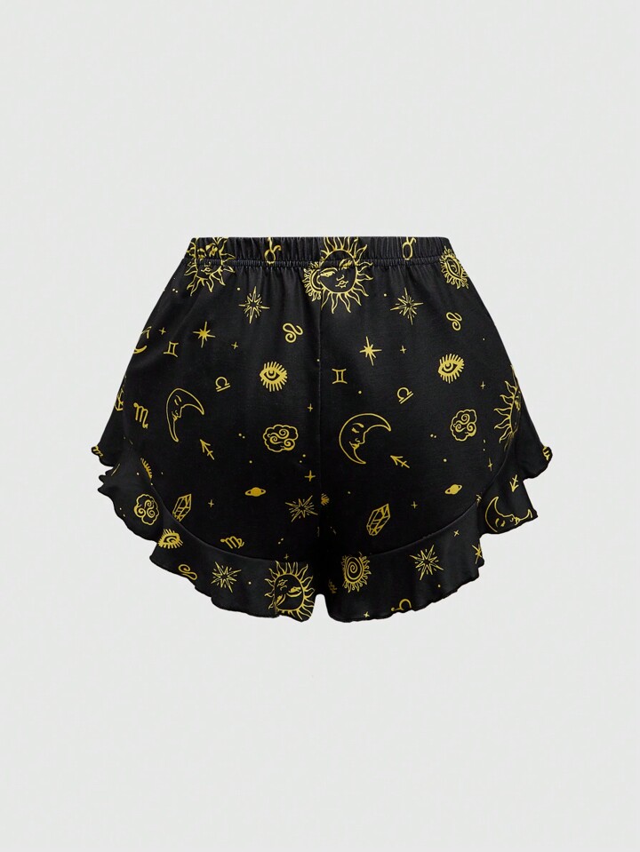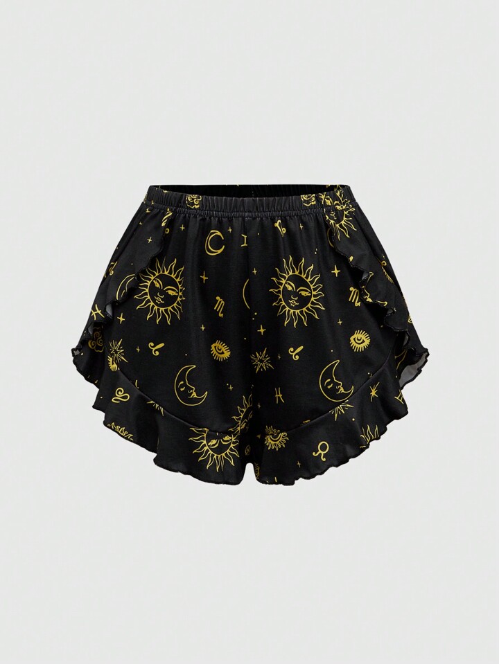 Hippie Tag & Nacht Sternenmuster Rüschen Saum Lässig Pyjama Set