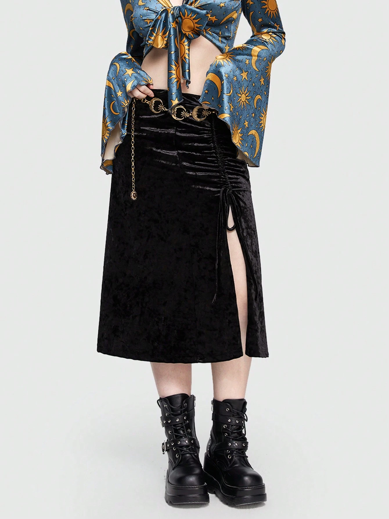 Hippie Rock mit Tunnelzug, Rüschen, Schlitz, Samt
