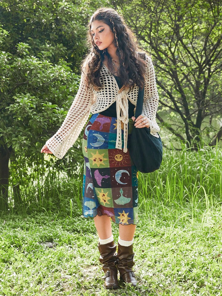 Hippie Cardigan mit Loch, Band vorne,