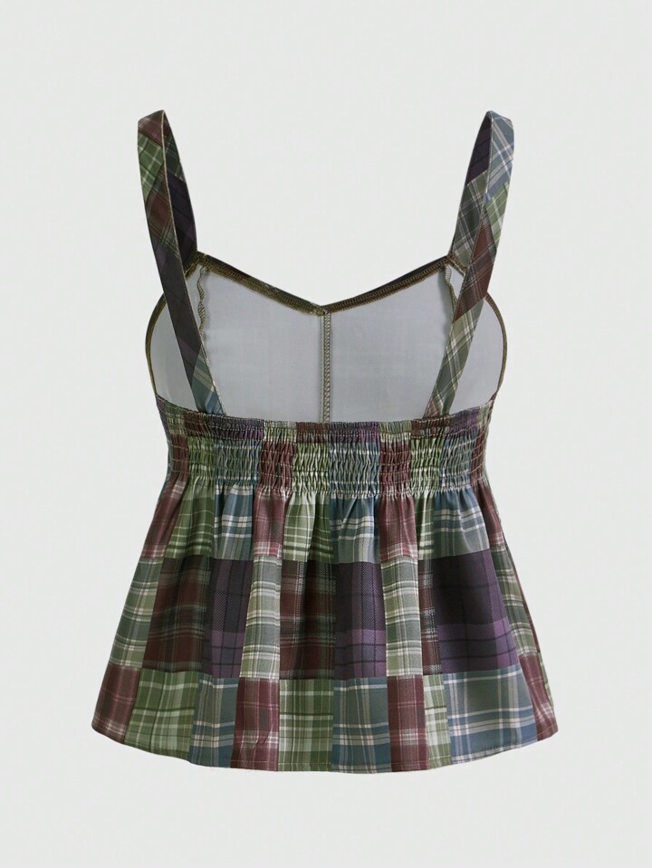 Hippie Cami Top mit Schößchen, Plaid Muster,