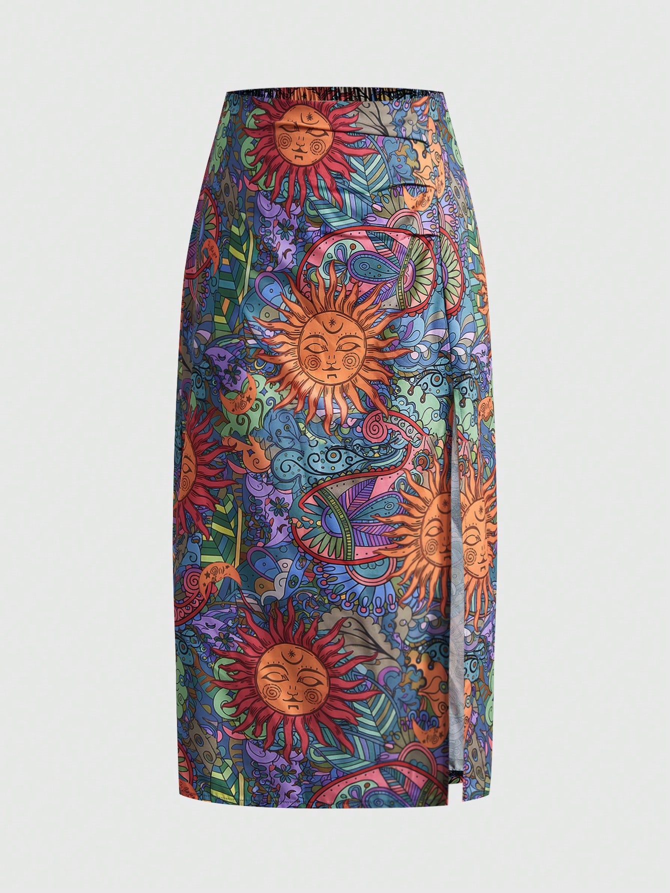 Hippie Große Größen Lässig Retro Allover-Muster Hoher Schlitz Rock