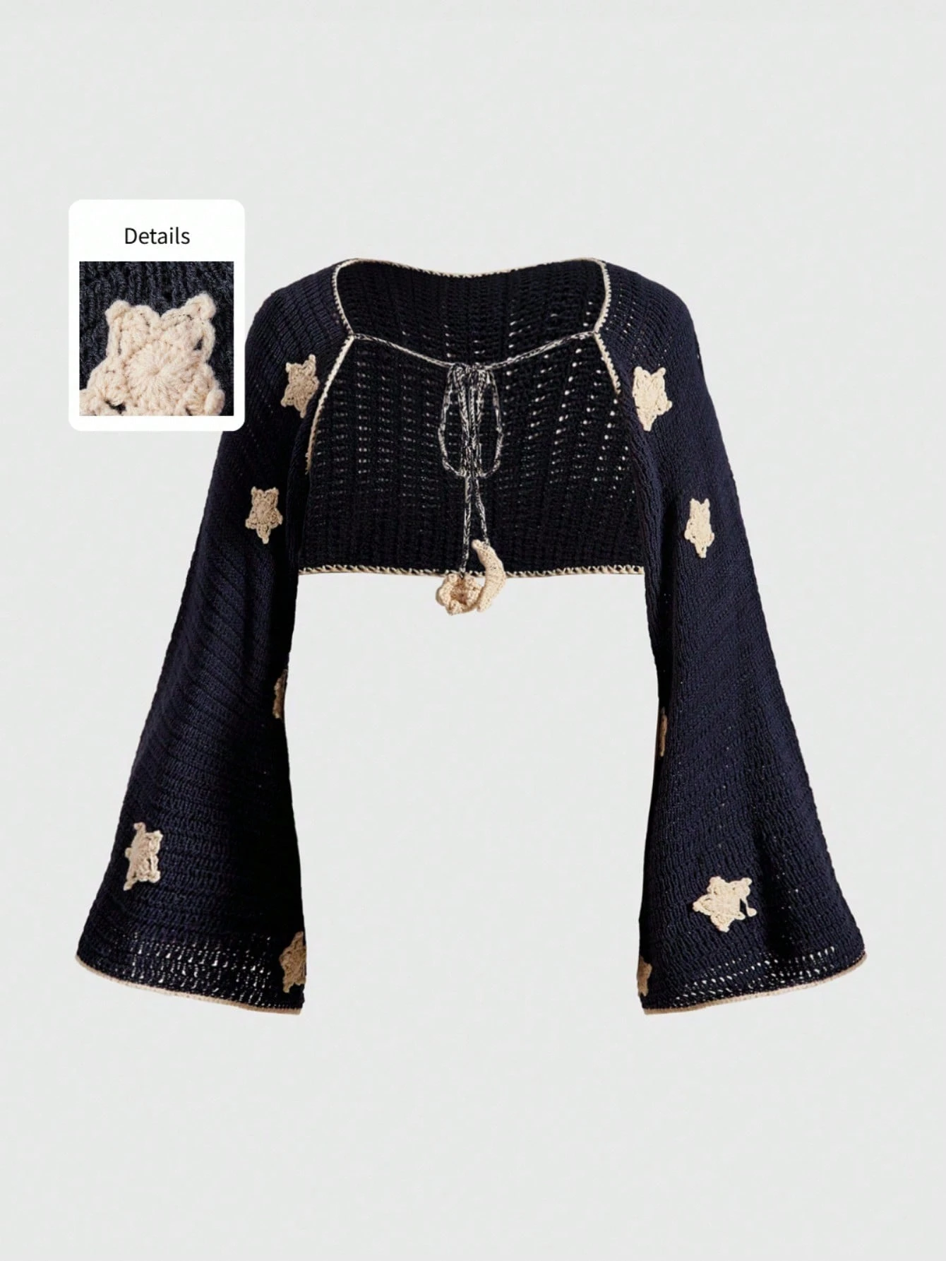 Hippie Vintage Astrologie Sternenmuster Strickjacke in Große Größen mit langen Ärmeln und Crop-Schnitt, Herbst/Winter