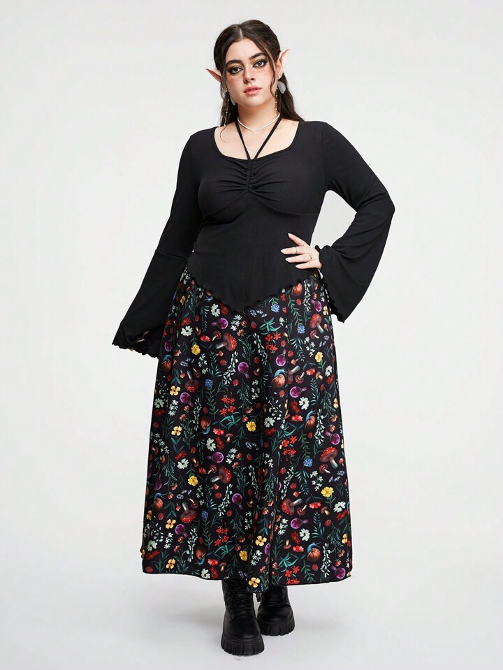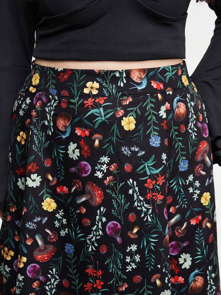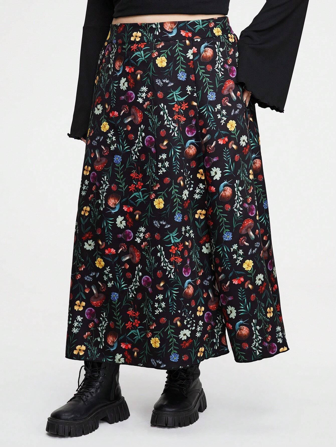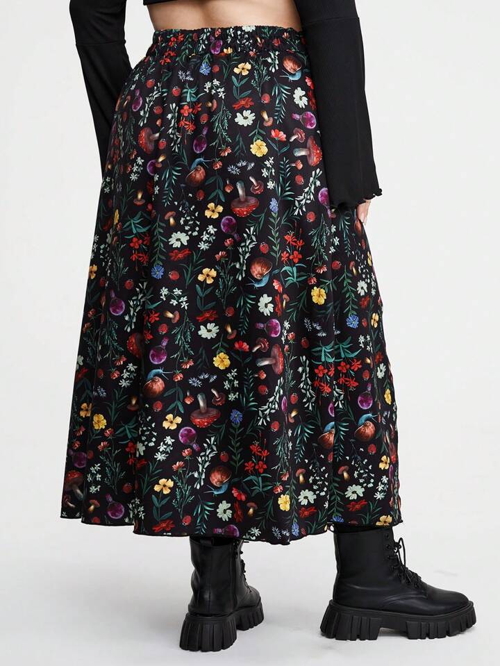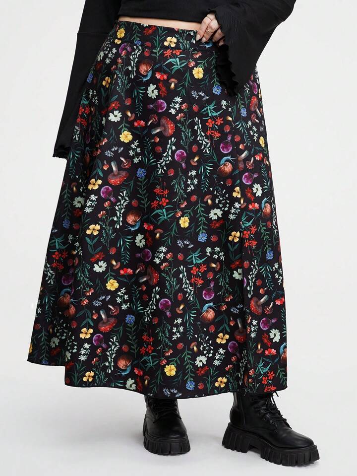 Hippie Rock mit modischem Waldpilzmuster und Schlitz für Frauen Große Größen