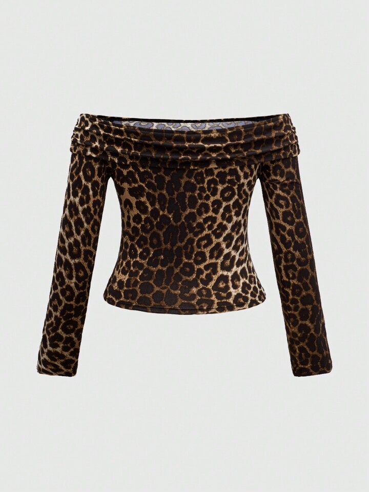 Hippie Damen Große Größen Vintage Off-Shoulder sexy Leoparden Muster T-Shirt