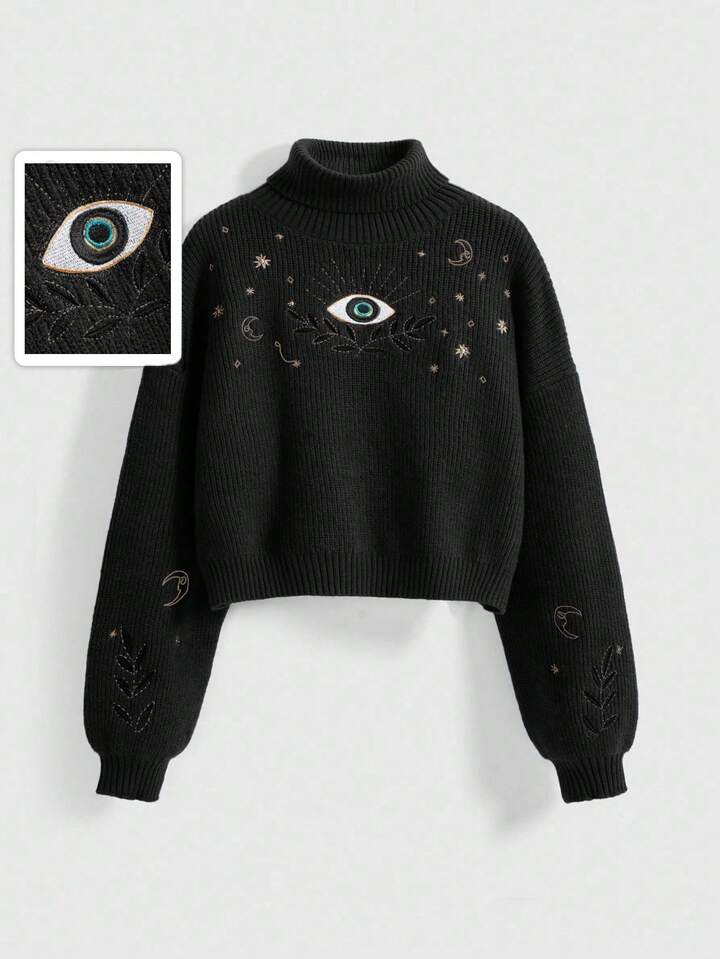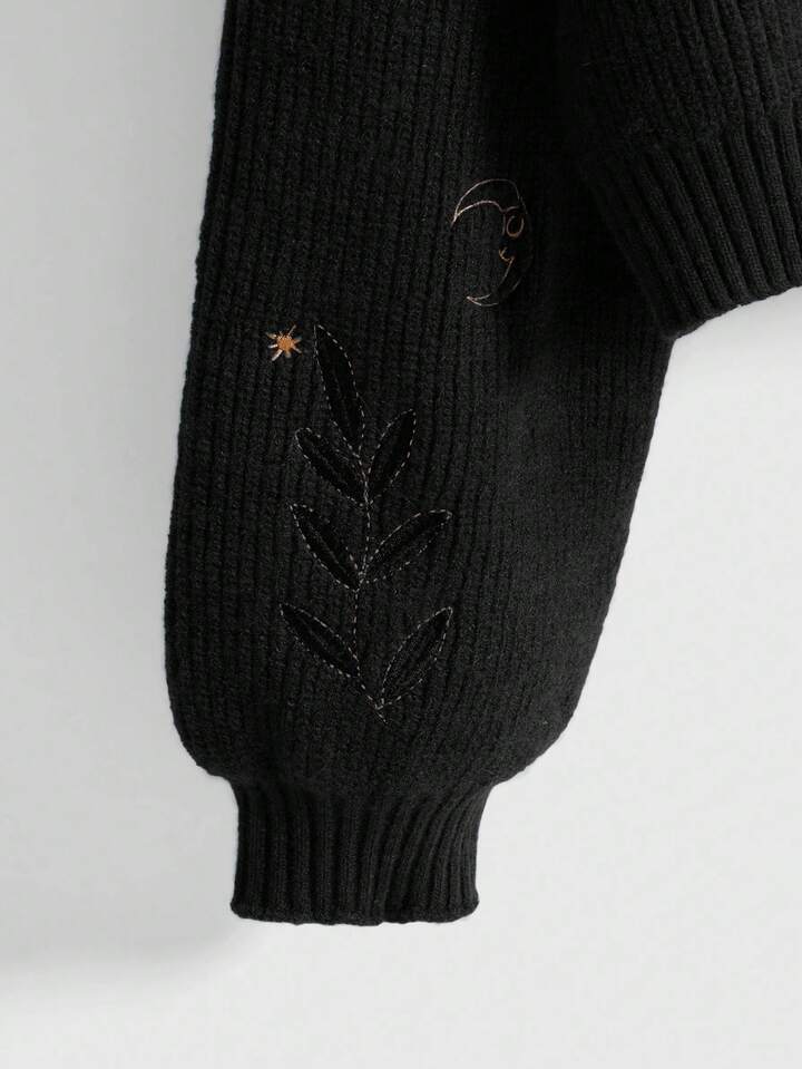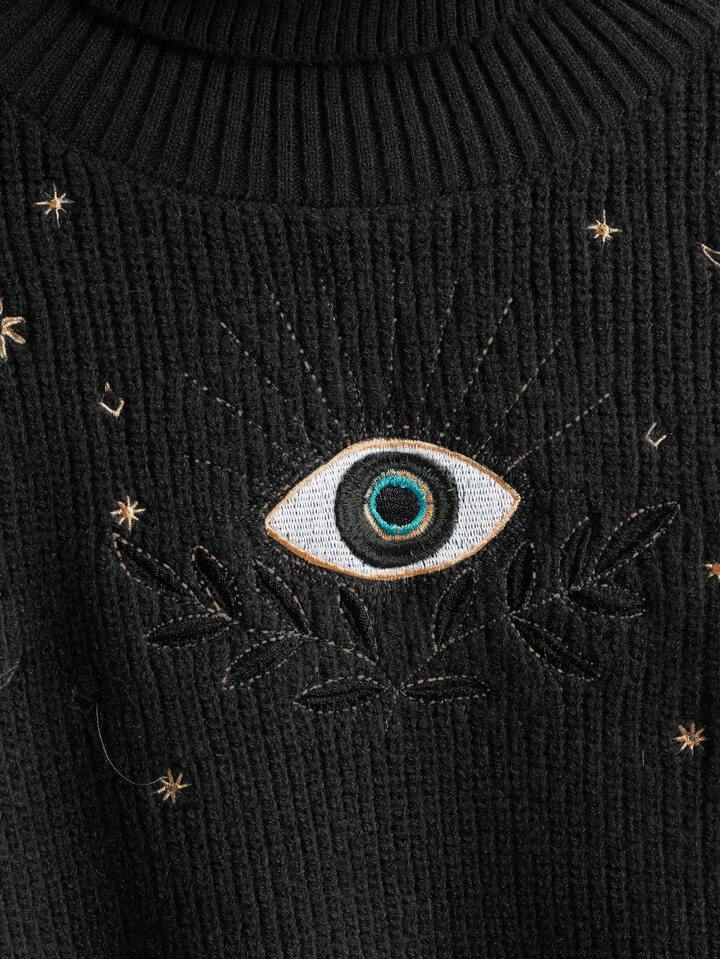 Hippie Retro Boho Urlaubsstil Mond & Stern Stickerei blau-grüner Pullover