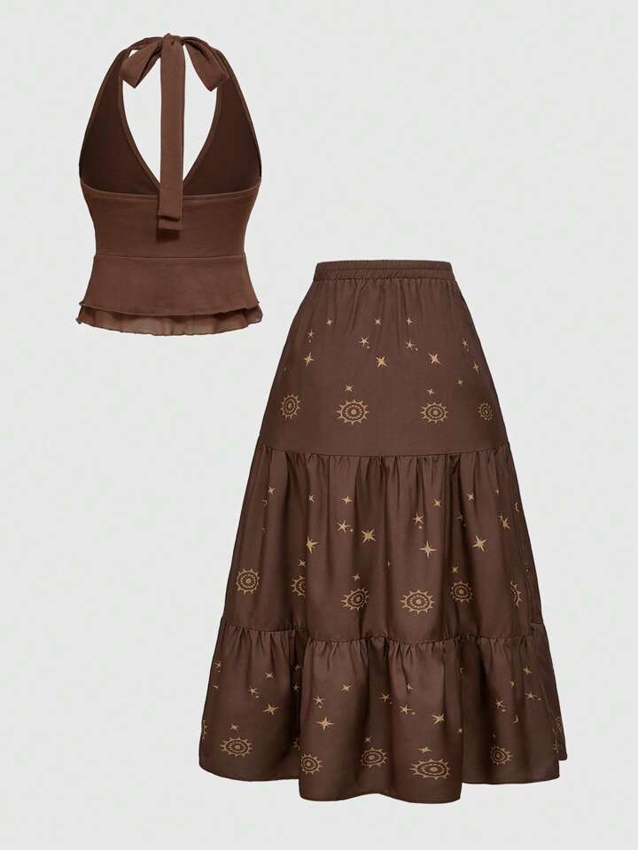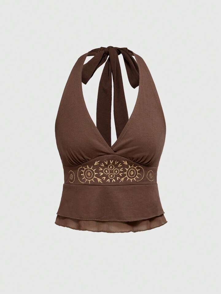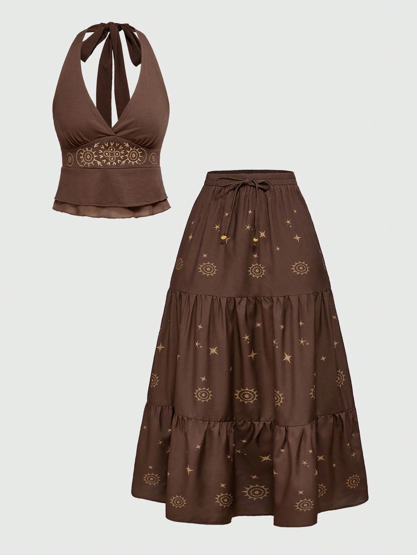 Hippie Sommer Boho-Stil besticktes Trägertop und A-Linien Minirock Frauen 2-teiliges Set