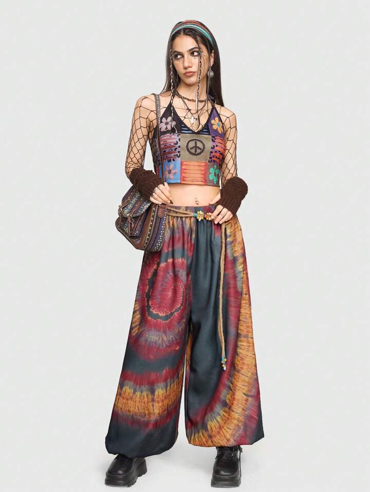 Hippie Hose mit weitem Bein und Batikmuster
