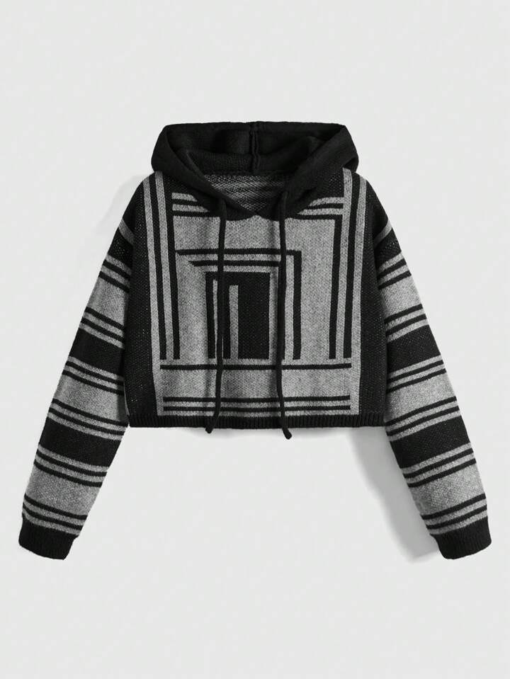 Hippie Damen Western Stil Geometrisches Muster Kurze Kapuzenpullover
