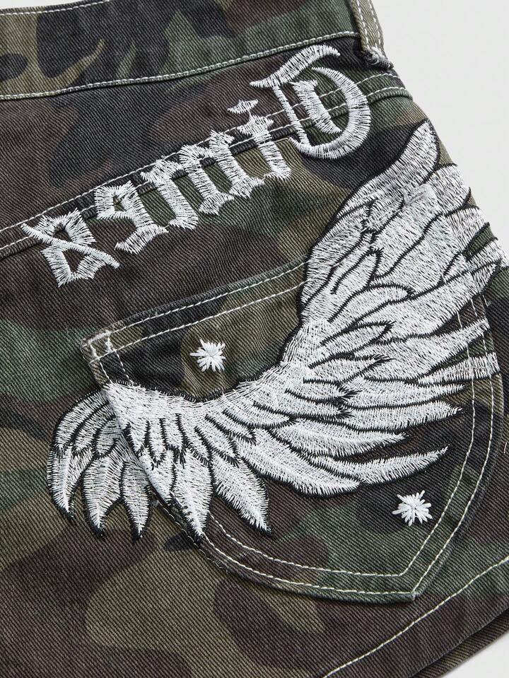 Hippie Damen sexy Straßen-Style Camouflage Muster Flügel Stickerei Denim Shorts