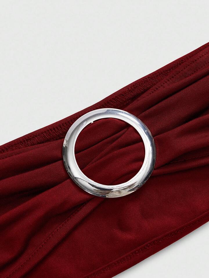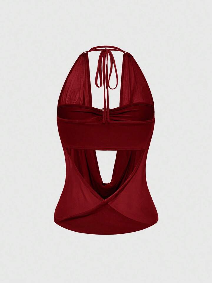 Hippie Damen Y2K Retro tief drapierter Ausschnitt rückenfreies Straßen-Stil trägerloses Trägershirt (inklusive Unterhemd-Futter)