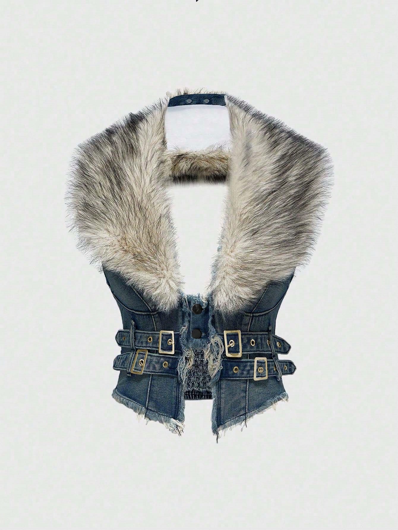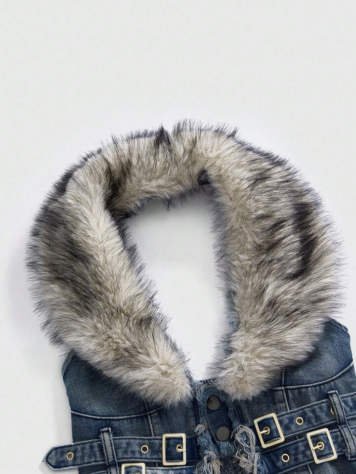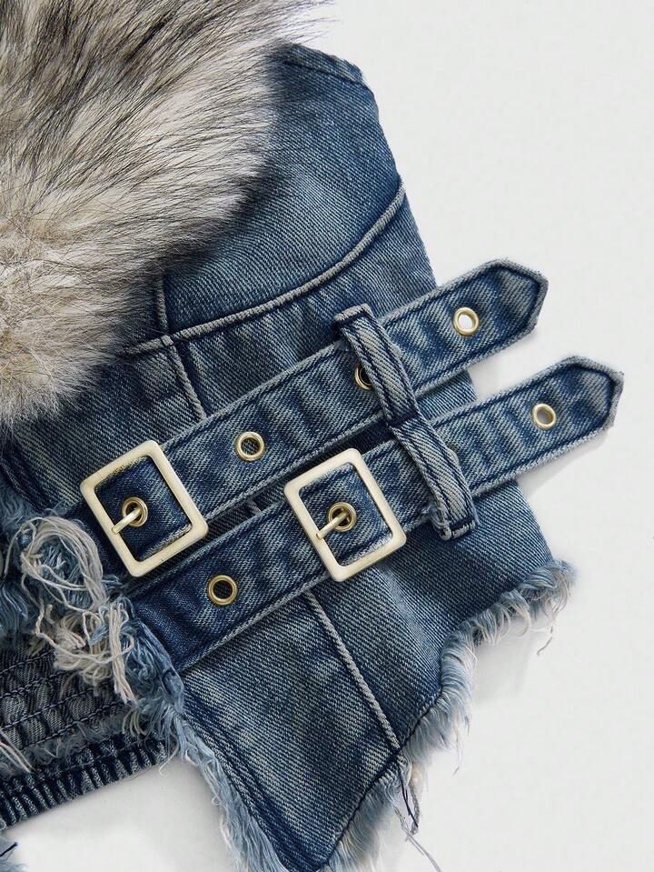 Hippie Y2K Abnehmbare Kunstfell Kragen Denim Jacke für Frauen