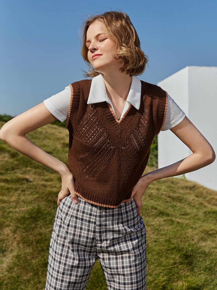Pullunder mit Loch, Kontrastsaum, ohne T-Shirt