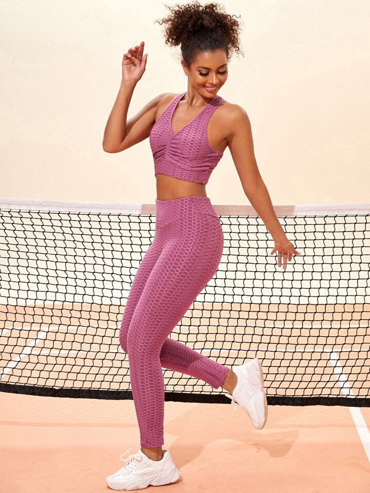 Wabenstruktur Ringerrücken Sport BH & Leggings Set