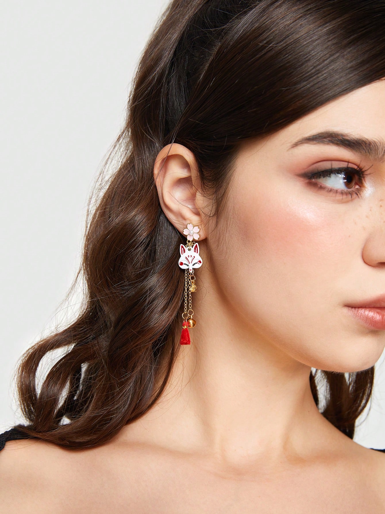 J-Fashion 1 Paar Fuchs Maske , Fächer , Glocke, Form Lang Ohrringe