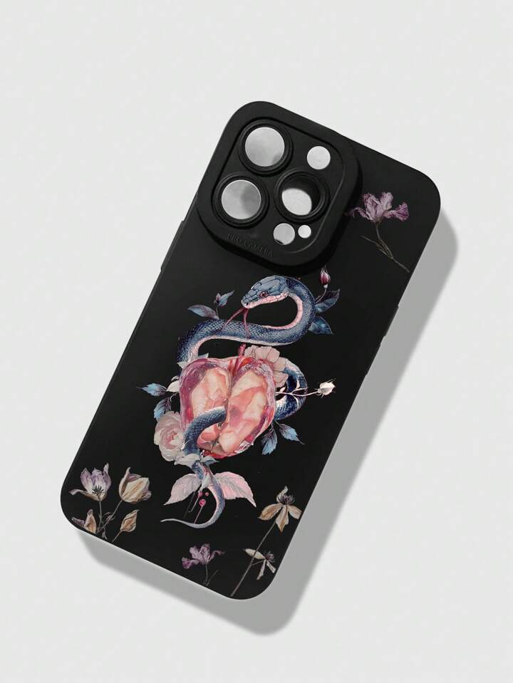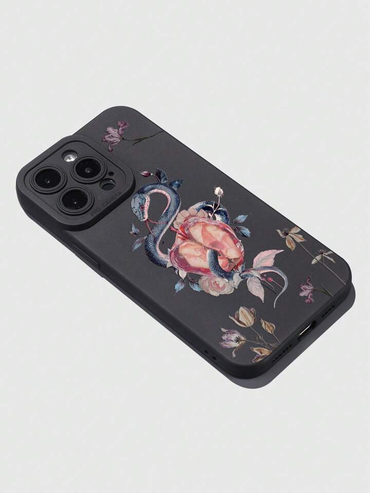 J-Fashion 1 Stück Schlangen- und Blumenmuster bedrucktes TPU-mattes Anti-Drop Schwarzes Handyhülle kompatibel mit iPhone
