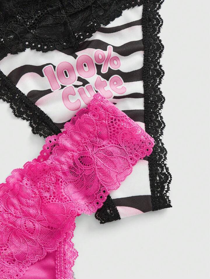 J-Fashion 3 Stücke/Set Y2K Gyaru Harajuku Leopard & Zebra Gestreift Kontrast Farbe Spitze G-String Höschen