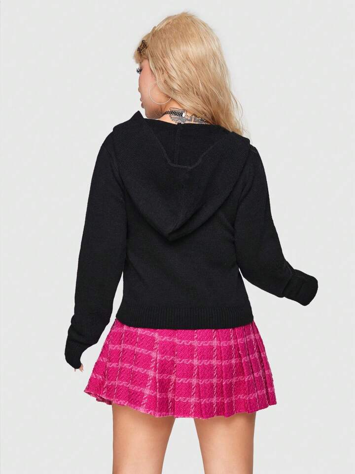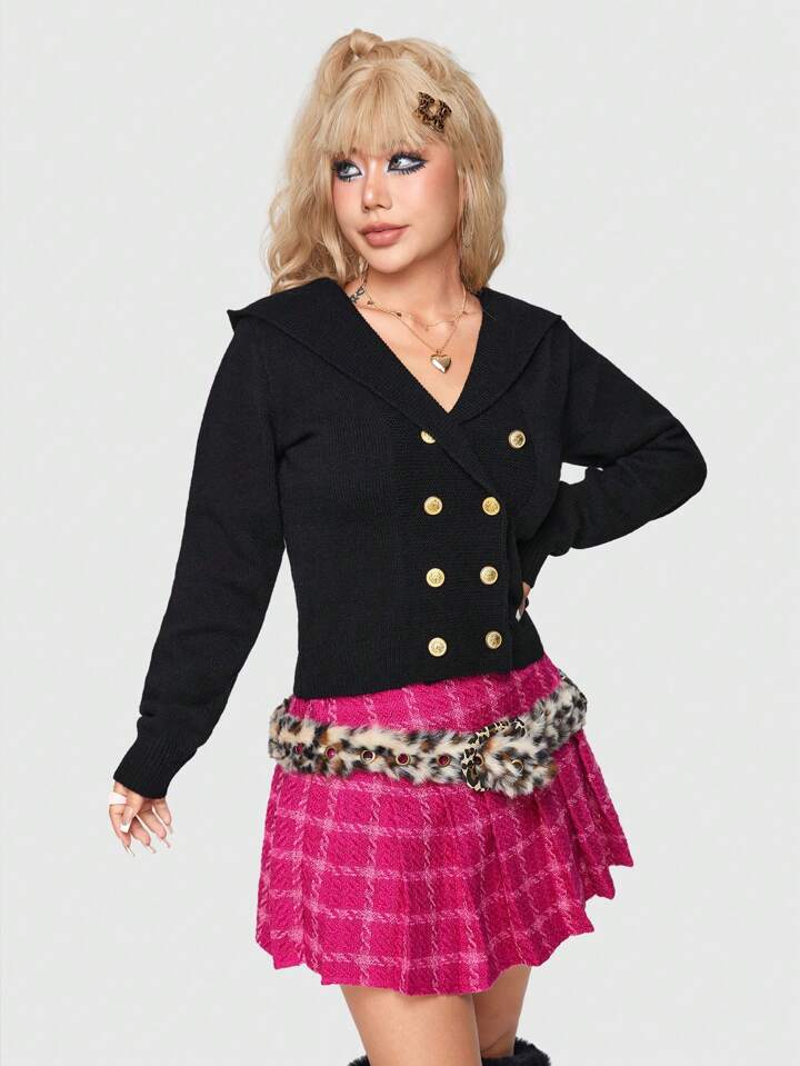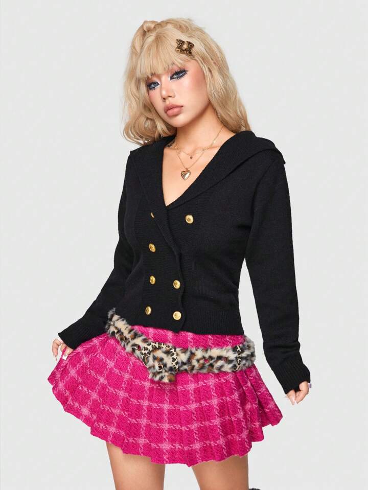 J-Fashion Schwarzer Weicher Doppelreihen-cardigan Für Frauen, Cooler Stil