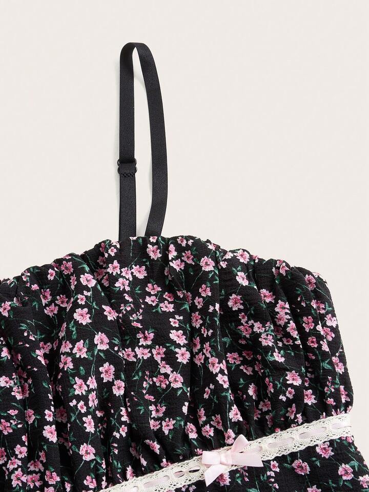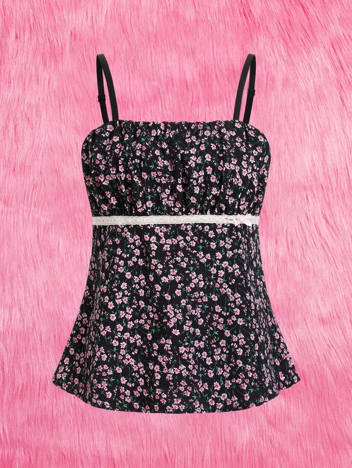 J-Fashion Cami Top mit Blümchen Muster, Kontrast Spitzen,