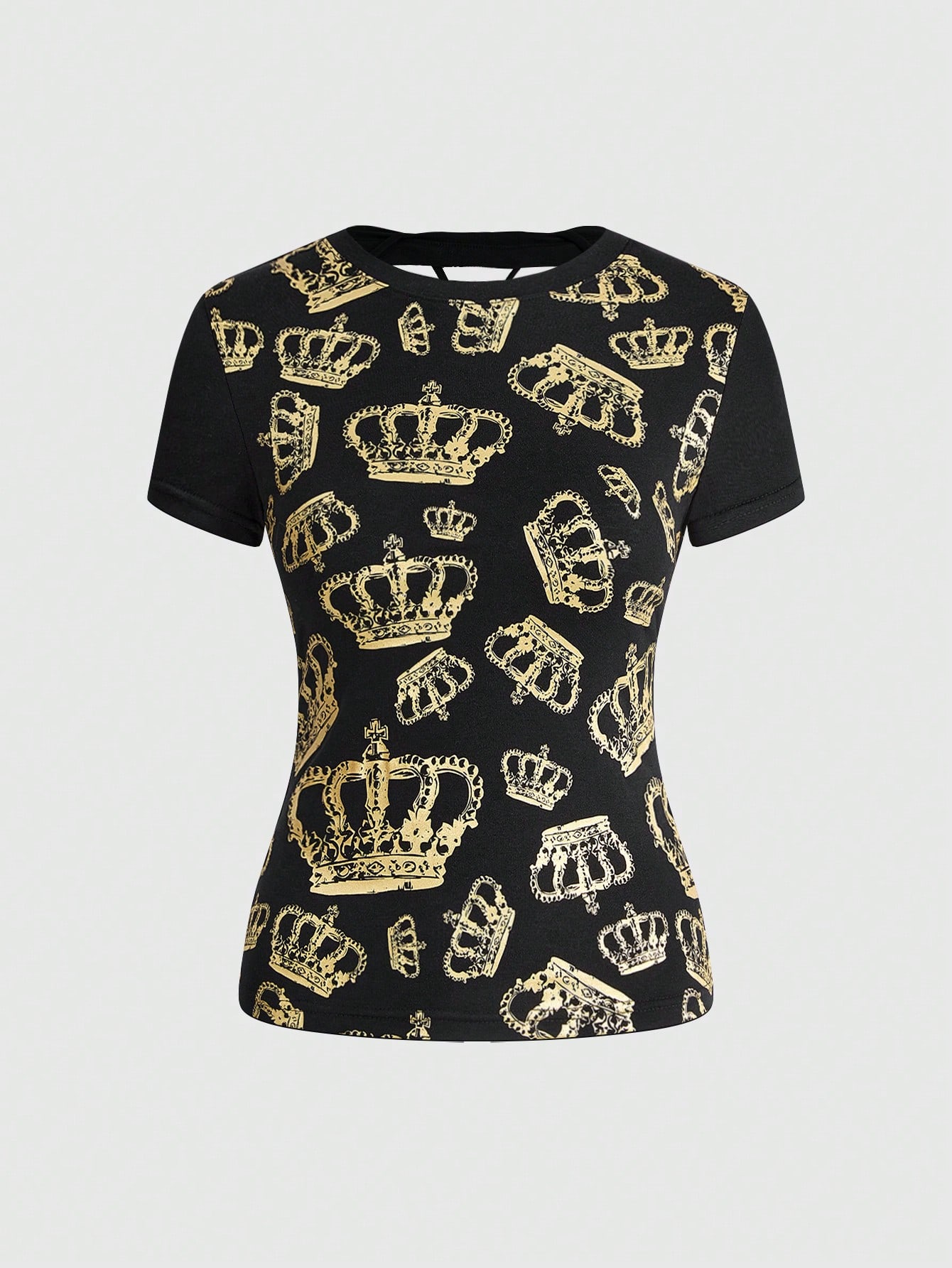 J-Fashion Damen T-Shirt mit goldfarbener Krone Aufdruck