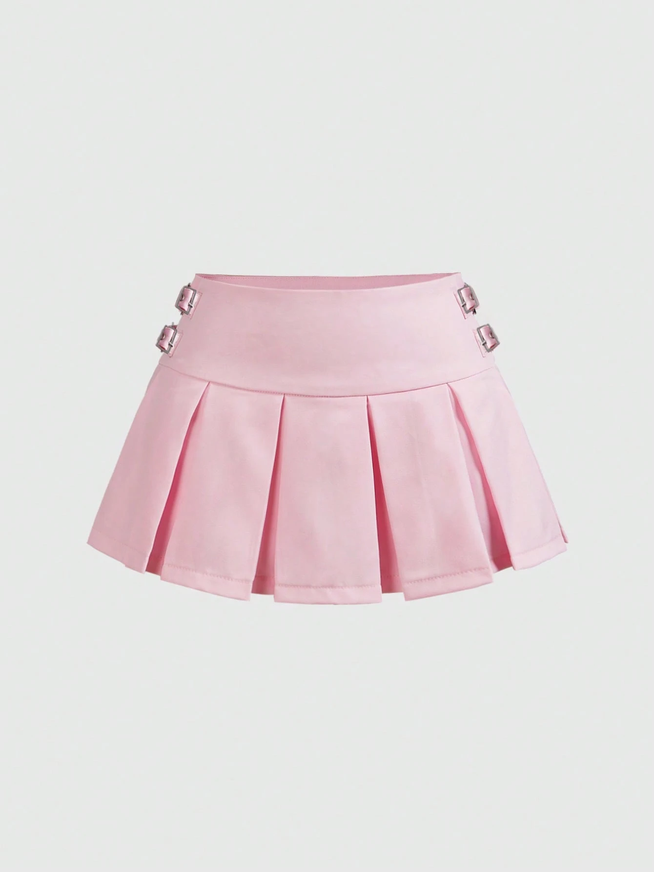 J-Fashion Kawaii süßer sportlicher Preppy rosa Mini-Rock mit niedriger Taille und Falten für Frauen