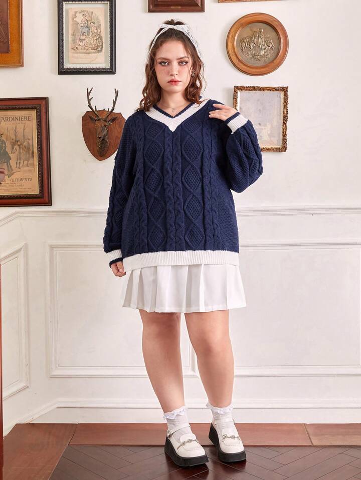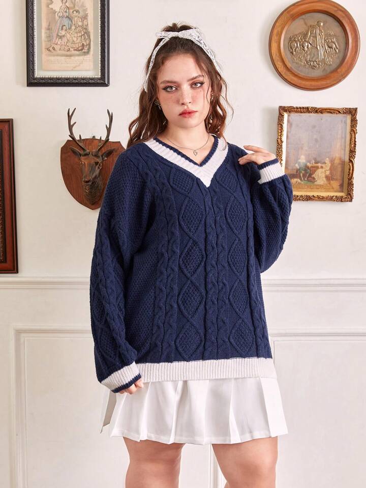 J-Fashion Kricket Pullover mit Zopfstrick Drop Shoulder