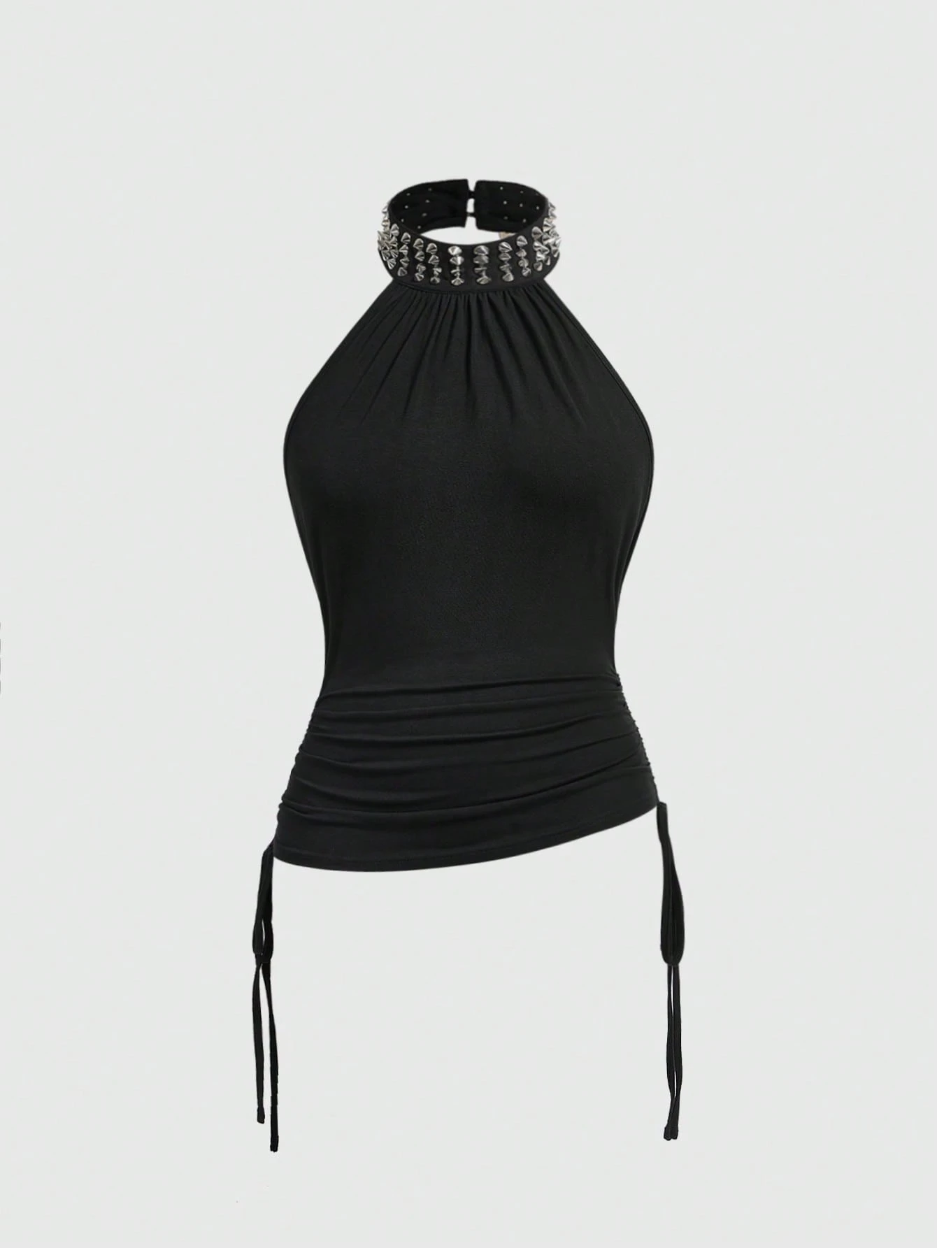 J-Fashion Sexy dunkler PUNK Nieten Patchwork rückenfrei Damen Top