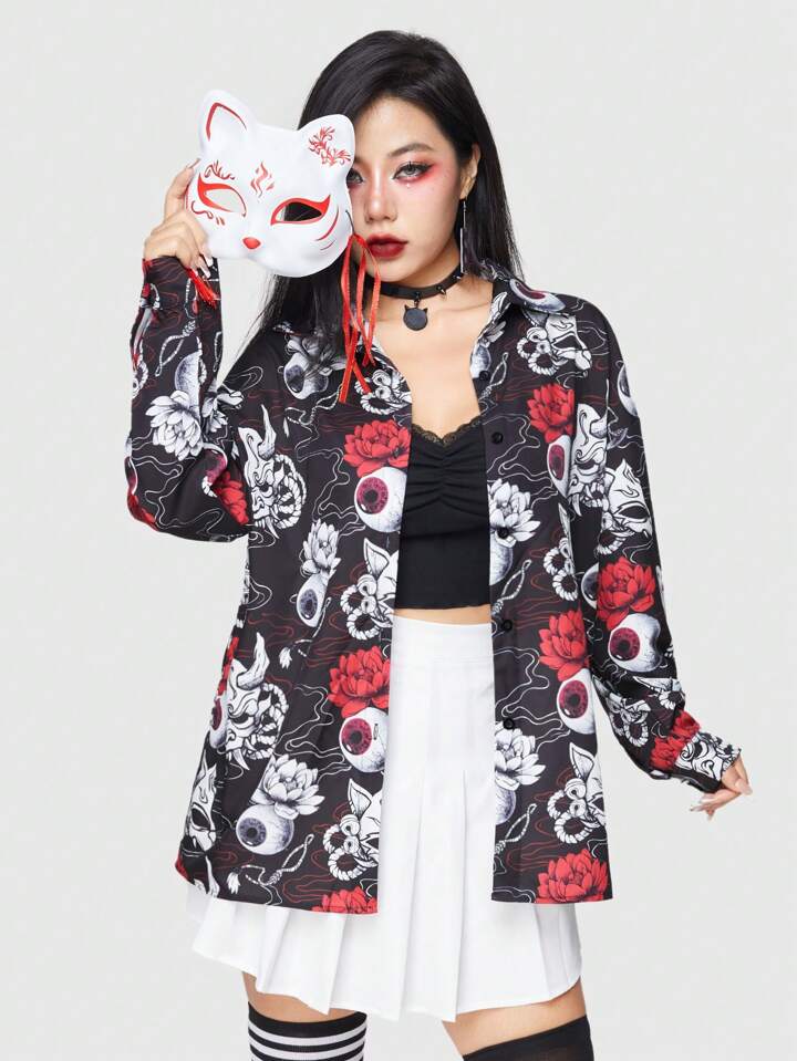 J-Fashion Hemd Mit Augen- Und Blumendruck