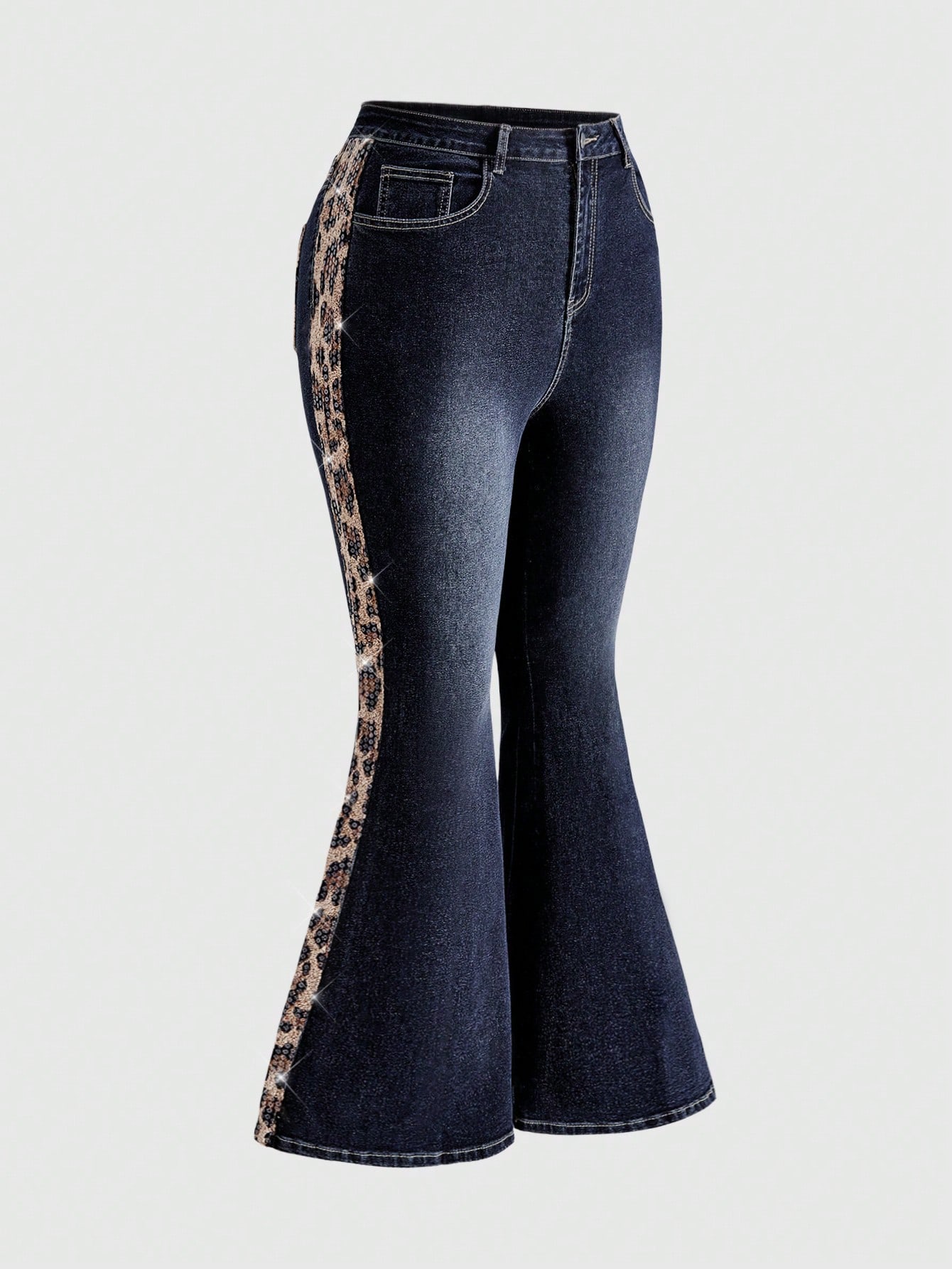 J-Fashion Skinny Jeans in Große Größen für Damen mit Hippie-Leopardenmuster und ausgefranstem Patchwork-Schlaghose