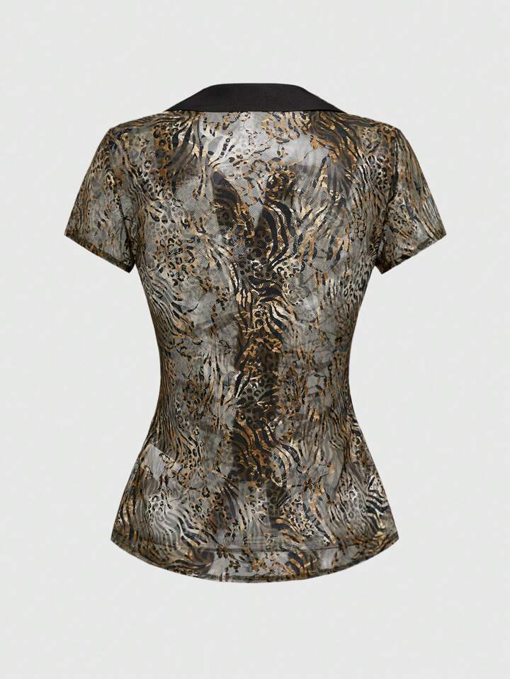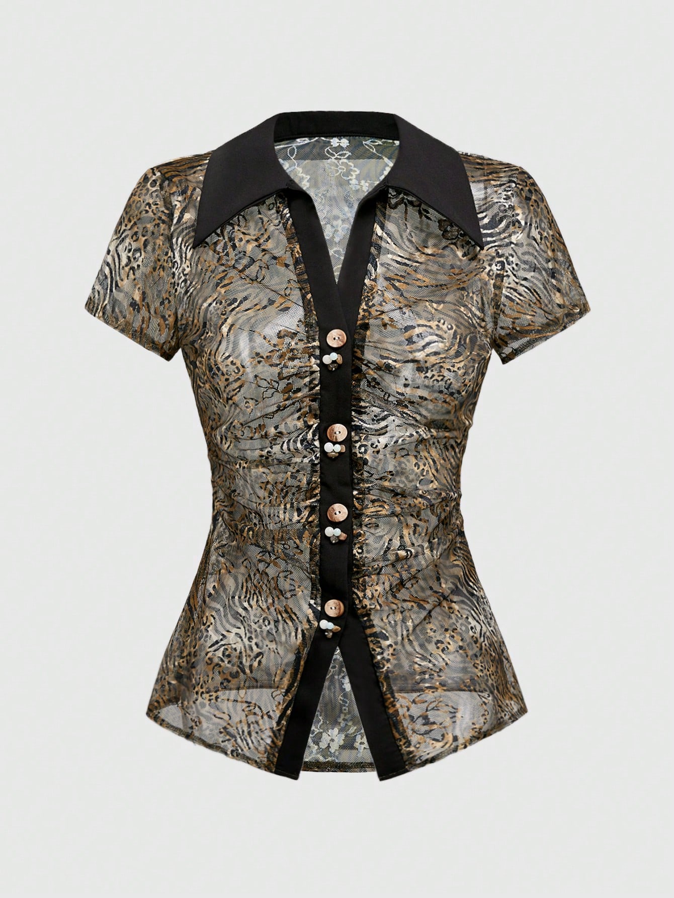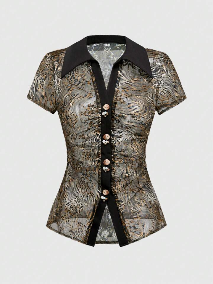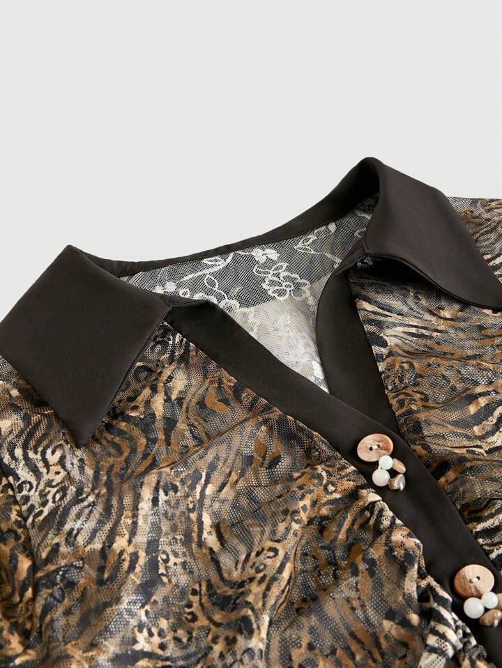 J-Fashion Vielseitiges Damen Hemd mit Leoparden-Muster, Raffung und Bindeband