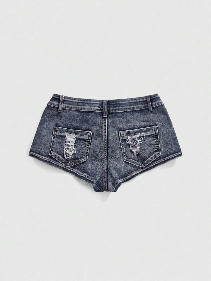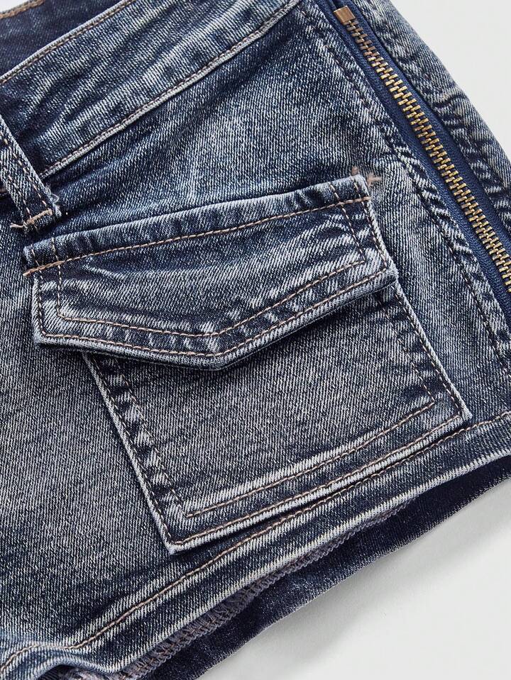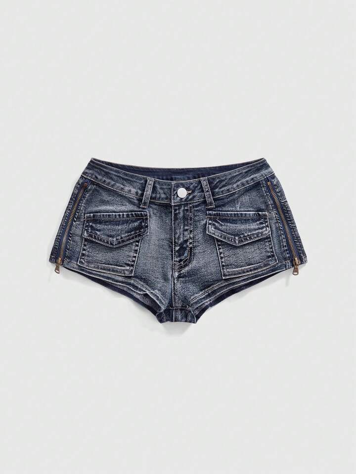 J-Fashion Vintage verwaschene Damen Denim Shorts mit tiefer Taille und sexy Metall-Reißverschluss