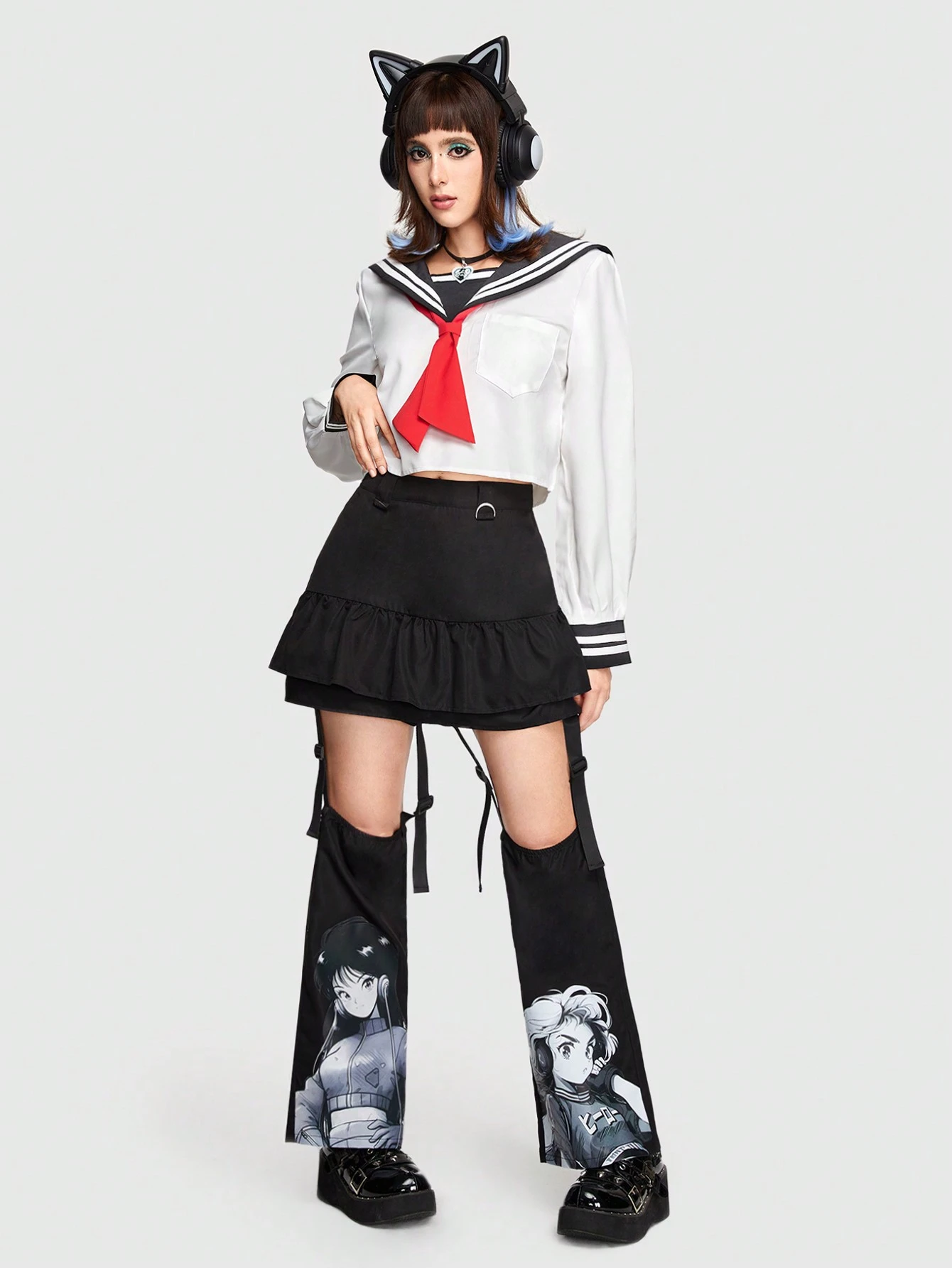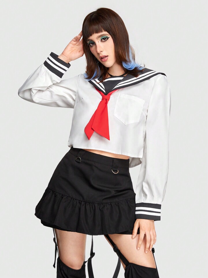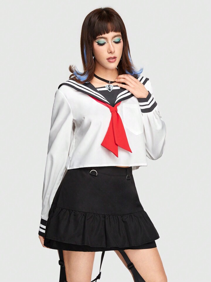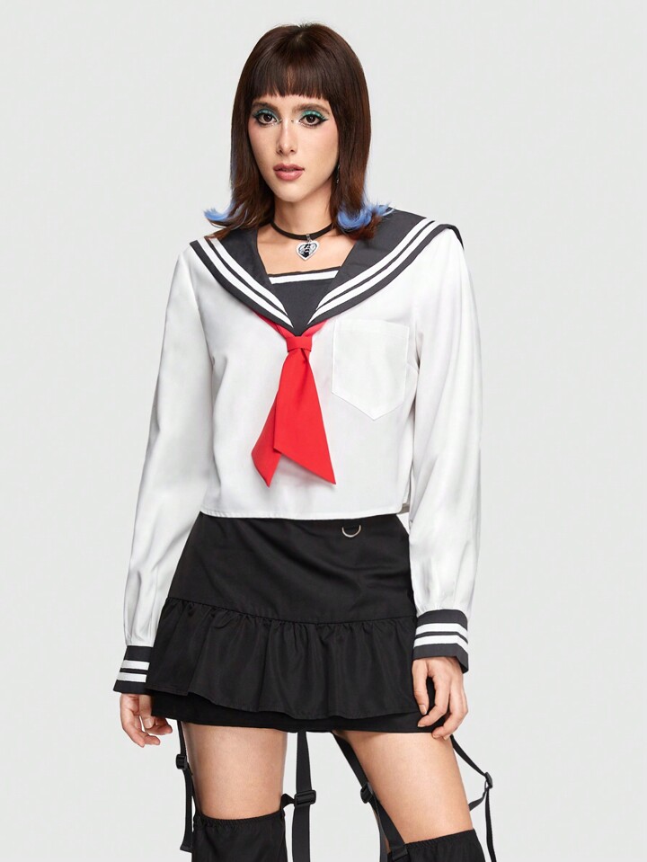 J-Fashion Japanischer Stil Sailor-kragen Hemd Für Damen Mit Aufgesetzten Taschen, Süß