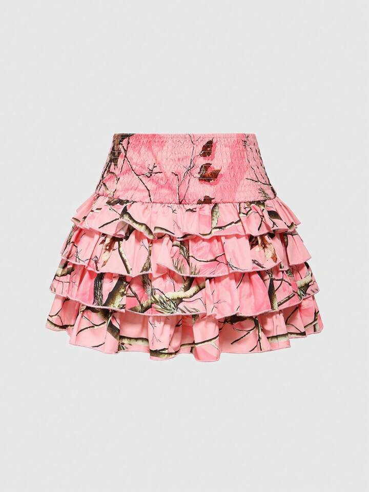 J-Fashion Damen A-Linien Rock mit mehrschichtigem Baum Ast- und Blatt-Muster