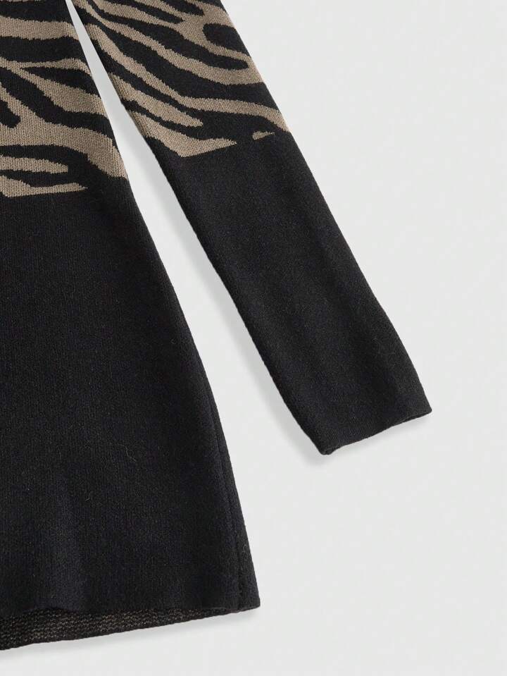 J-Fashion Damen Lässig Strickkleid, Off-Shoulder, Einfarbig, Patchwork, Langarm