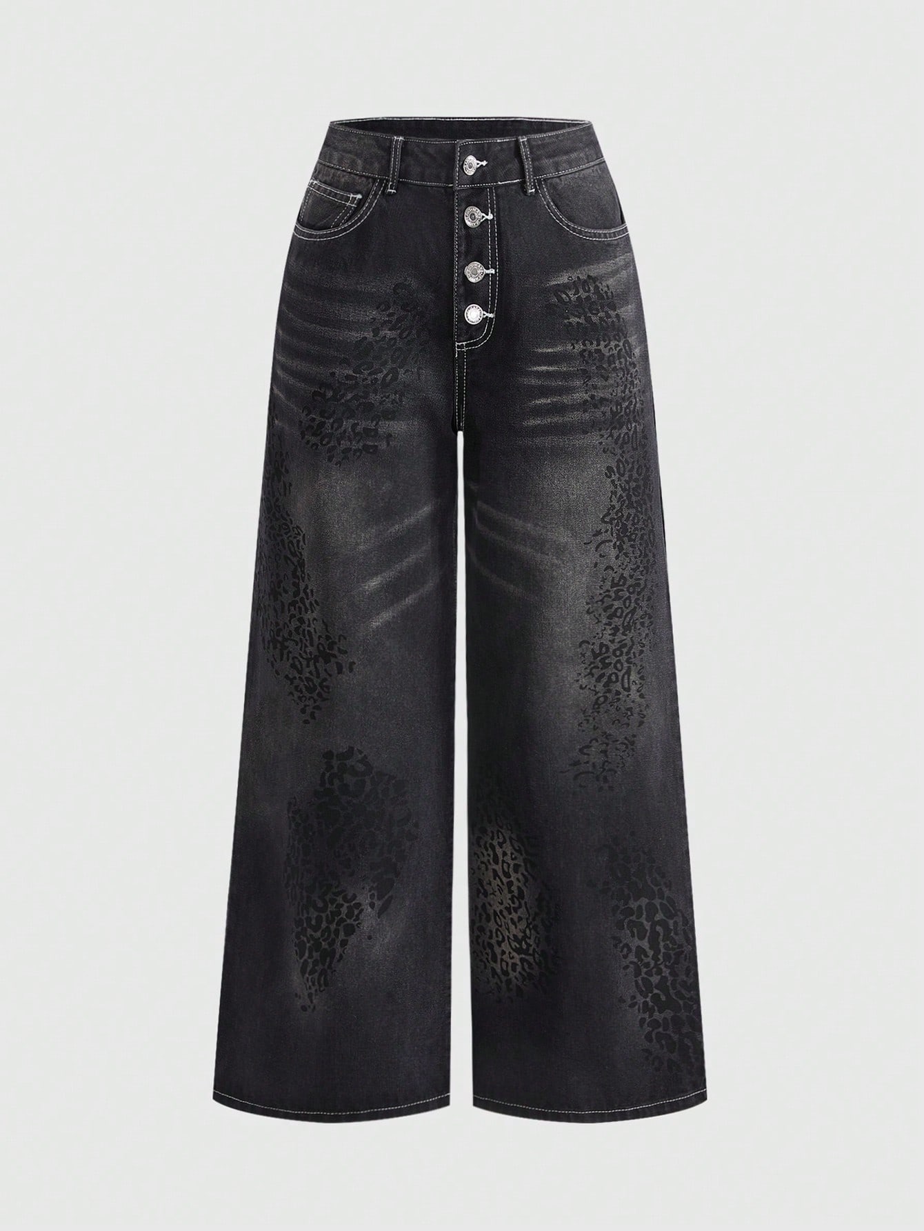 J-Fashion Y2K Harajuku Leoparden-Muster weite Schlupfhose