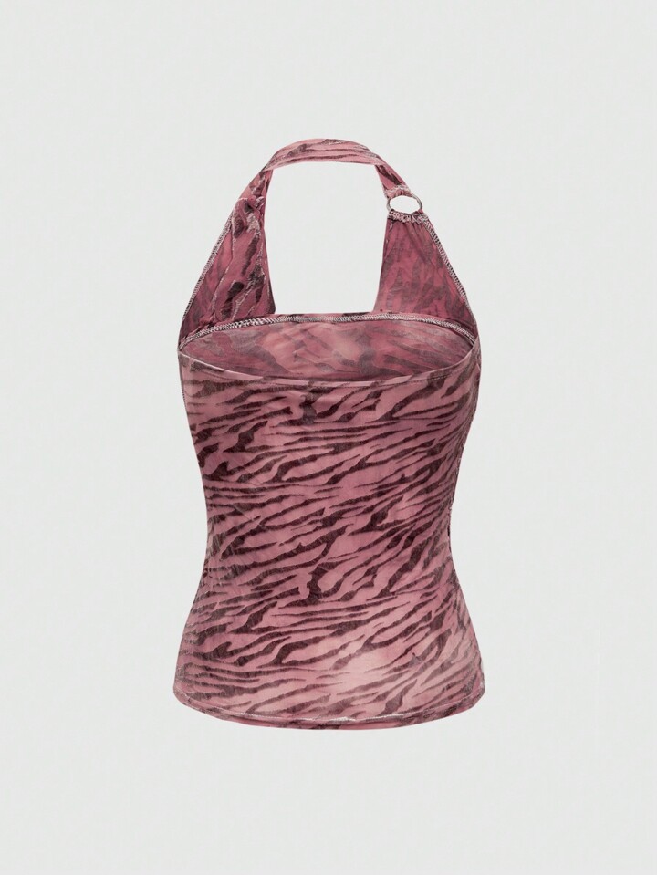 J-Fashion Y2K Harajuku Stil Zebra Muster Trägertop mit Drapierung am Kragen für Damen