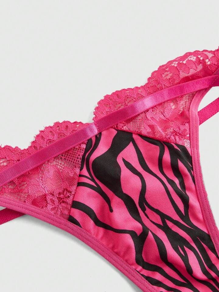 J-Fashion Y2K Millenniums-rosa Zebra-Muster Kontrast-Spitzen-Metallbügel-Sexy-Wäsche-Set