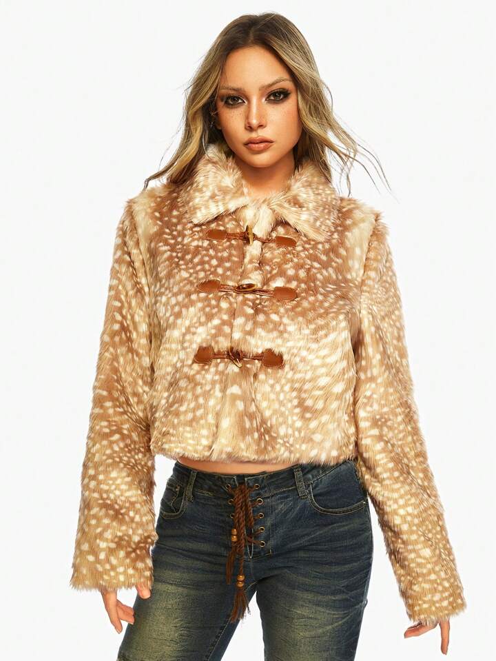J-Fashion Y2K Vintage Harajuku Reh Kunstpelzmantel mit Hornknöpfen, Regular Fit Damen Oberbekleidung, geeignet für den Winter
