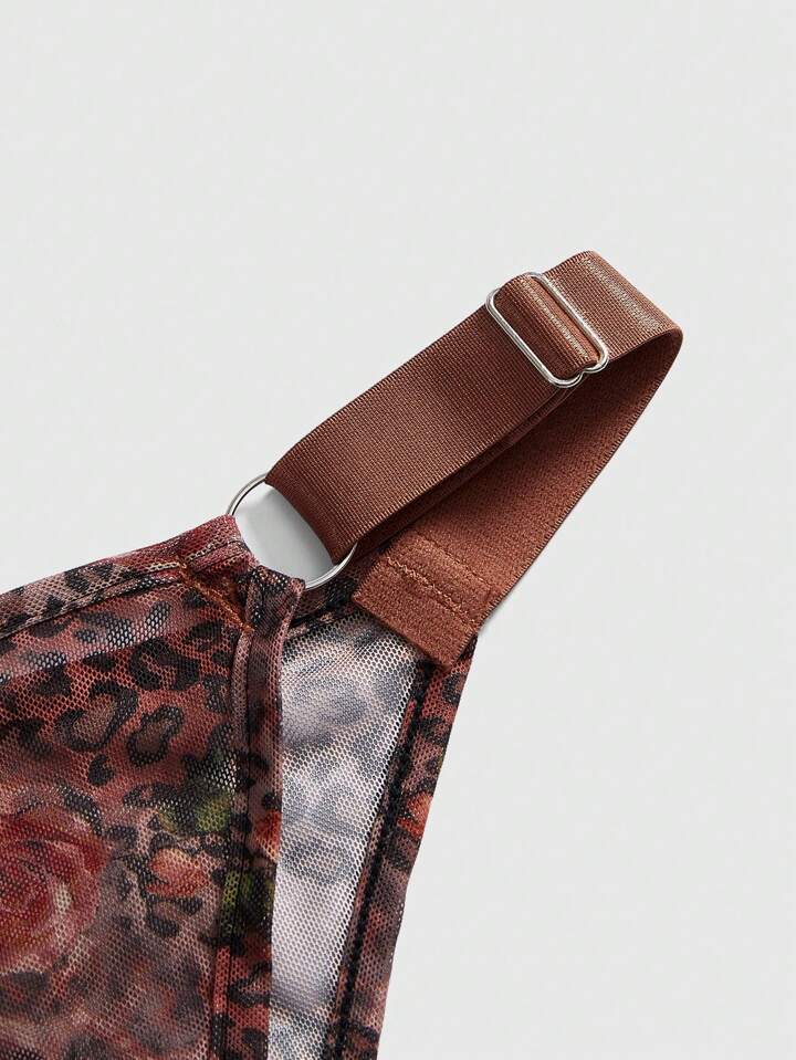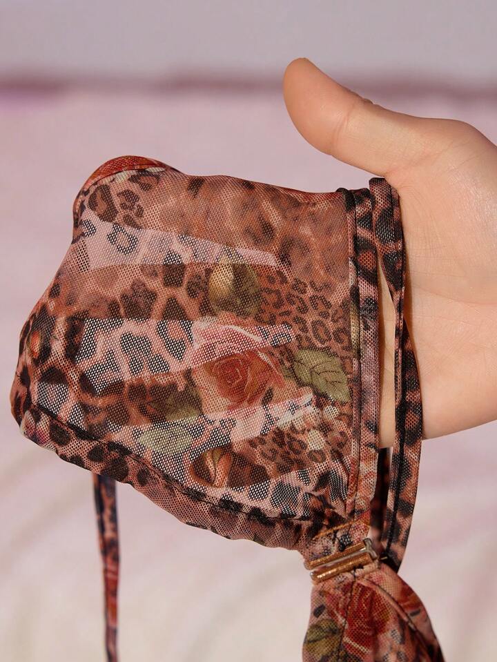 J-Fashion Y2K Vintage Leoparden Muster & Blumen Nicht-umwickelte Mesh Sexy Dessous Set für Frauen