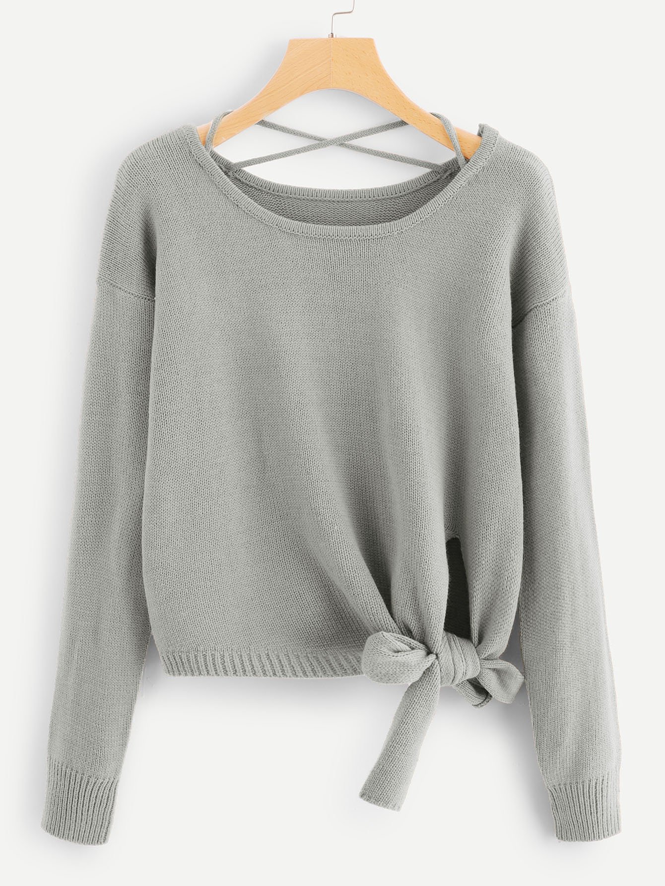 Pullover mit Knoten auf den Seiten und Kreuzguere hinten