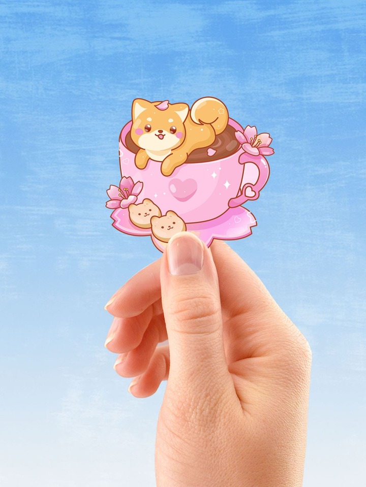 JullDiaz Aufkleber mit Cartoon Hund & Kaffee Muster