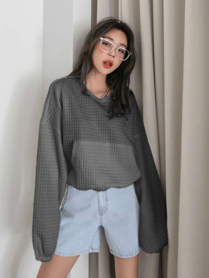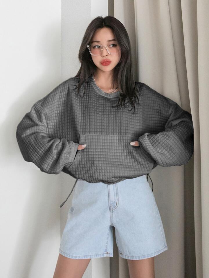 Übergroßes Sweatshirt mit Känguru-Tasche, Schnürzug am Saum