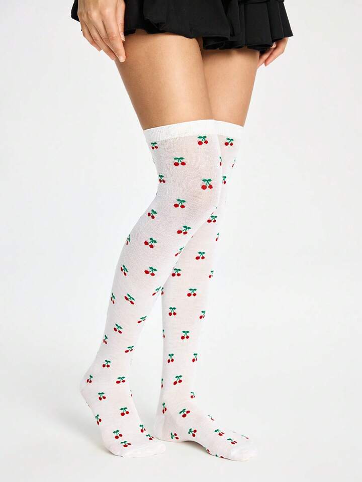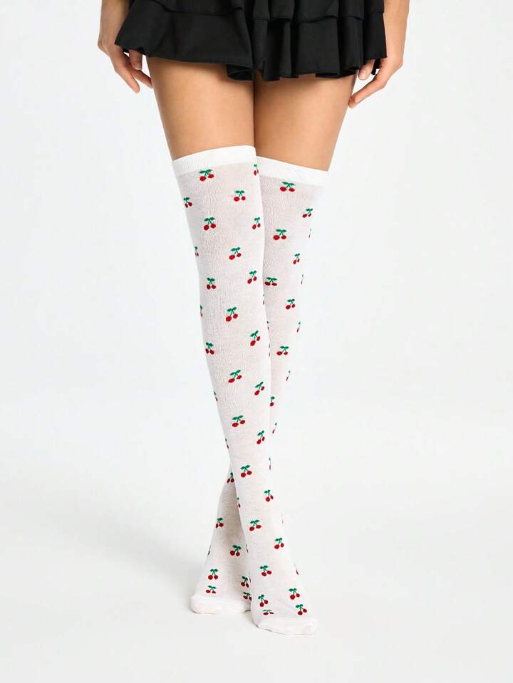 Kawaii 1 Paar dunkel gotische niedliche Kirsch Muster Oberschenkel Hohe Socken