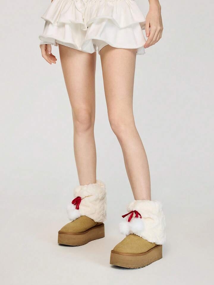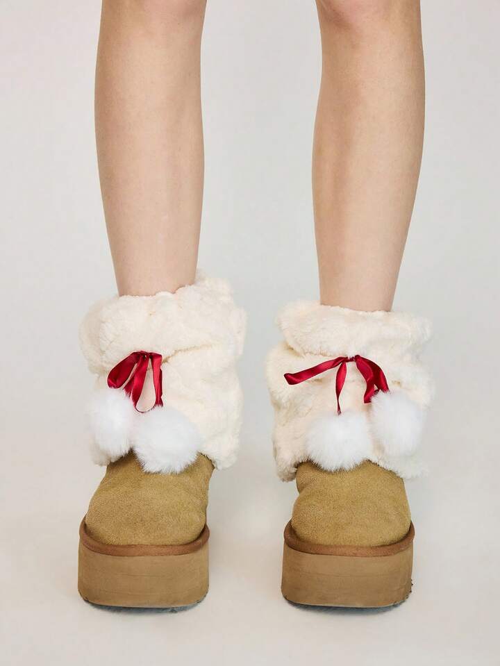 Kawaii 1 Paar niedliche weiße Plüschsocken, warme Nachahmung Kaninchen Samt Socken mit mittellangen und langen Bommel für Herbst und Winter, Lolita-Stil Beinabdeckung
