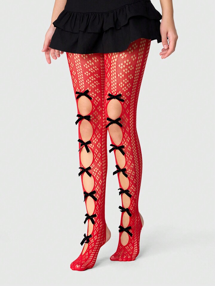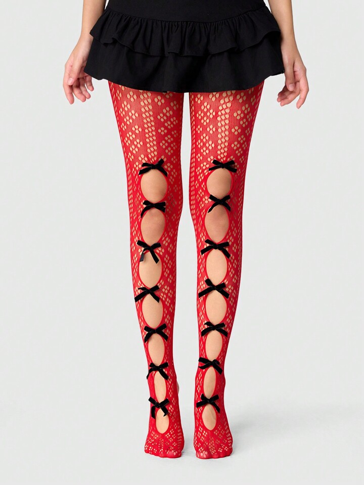 Kawaii 1 Paar Frauen 14 Schleifen Doppelschicht Netzstrümpfe, geeignet für alle Jahreszeiten
