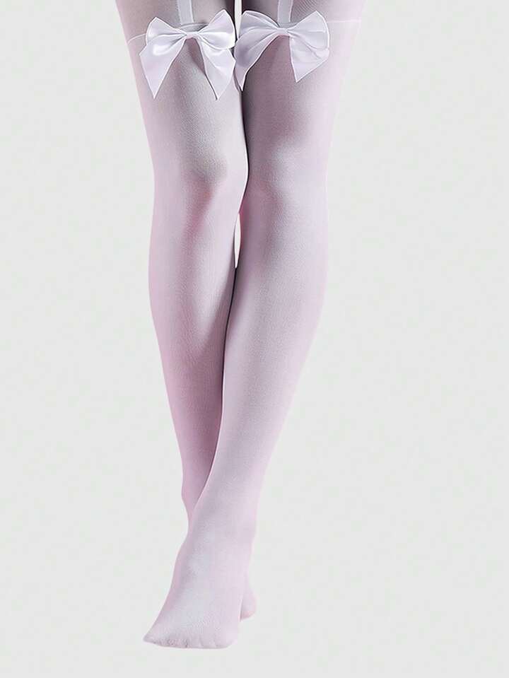 Kawaii 1 Paar Damen dunkel Schleife gefälschte mehrschichtige High Stockings, geeignet für alle Jahreszeiten